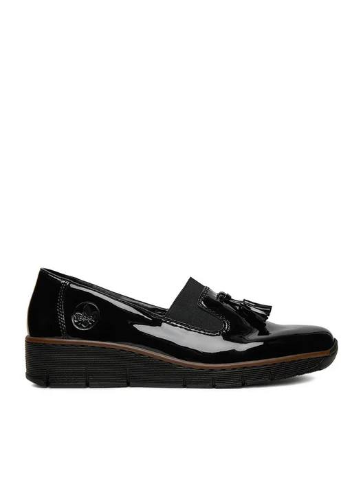 Dodaj do swojej garderoby odrobinę stylu i komfortu z loafersami marki Rieker! Wykonane z wysokogatunkowego tworzywa syntetycznego, zapewniają trwałość i łatwość w pielęgnacji. Koturn subtelnie podkreśla sylwetkę, jednocześnie oferując stabilność i wygodę podczas codziennego użytkowania. Ozdobne frędzle nadają butom oryginalnego charakteru, dzięki czemu świetnie sprawdzą się w różnorodnych stylizacjach. Technologia Rieker Antistress gwarantuje doskonałą amortyzację i redukcję zmęczenia stóp, zapewniając komfort przez cały dzień. Stylowe i praktyczne – idealne na co dzień!